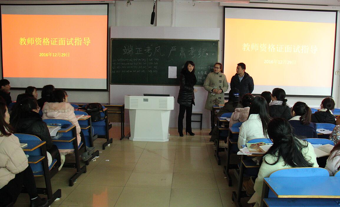 12月29日,365英国上市公司在艺术楼307室举办教团队格证面试指导教学。公司副经理涂湘东与公司教师管艳、张峰一同为本次通过教团队格证笔试的美院学子进行面试指导。