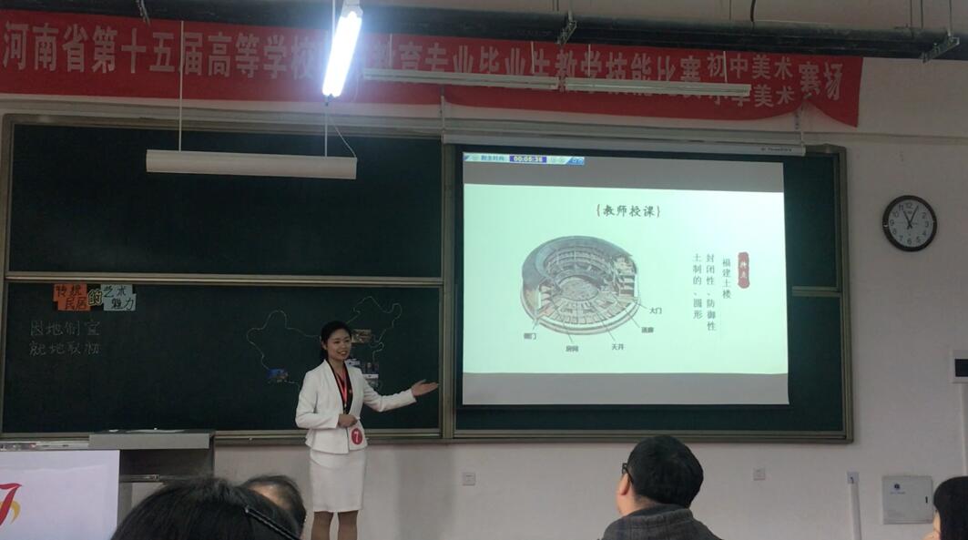 281名选手在14个赛场进行比赛,分为初中组、小学组16个学科以及学前教育本、专科2个小组。比赛内容包含说课、答辩、才艺展示和专业技能展示等环节,比赛竞争激烈,信阳师范公司365英国上市公司参赛选手苏红在初中美术组十一人中,抽签说课题目为《传统民居的魅力》,在说课过程与答辩环节中,选手充满自信,稳定发挥,并在才艺展示金粉画环节赢得全场掌声,获得一等奖。