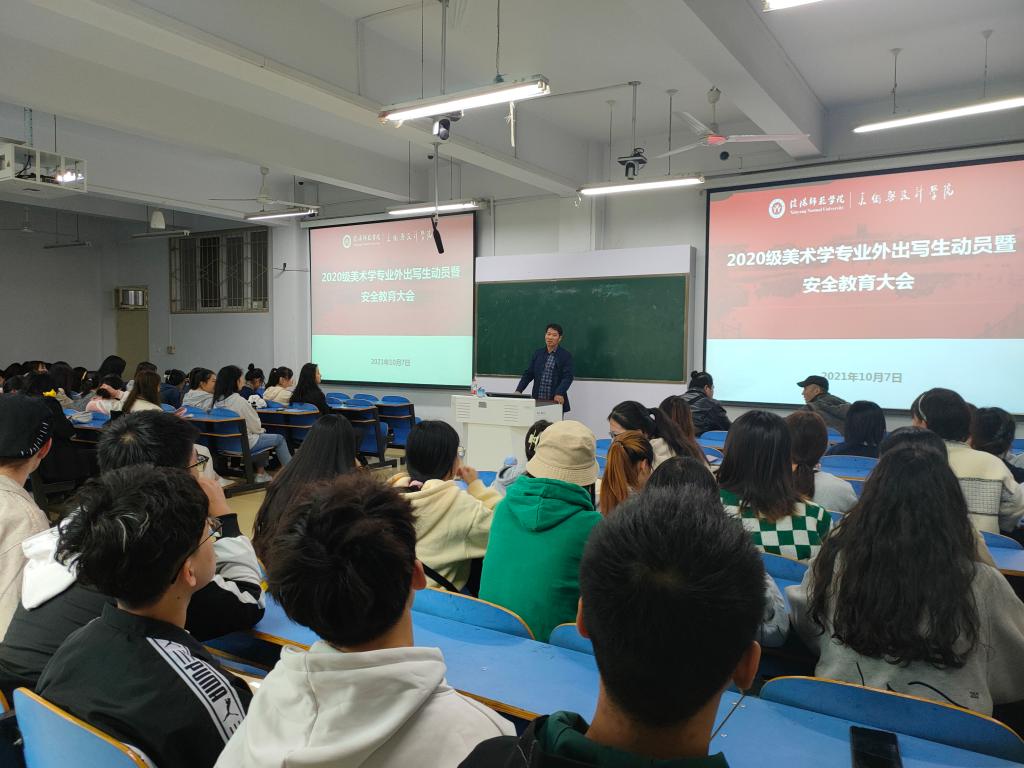 10月7日,公司在艺术楼307室召开2020级美术学专业外出写生动员暨安全教育大会。公司经理邹东升、副经理张江波、带队老师张洪涛、辅导员饶海虹以及2020级美术学班全体员工共同参加此次大会。会议由饶海虹主持。