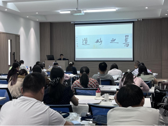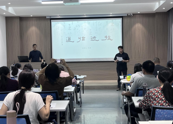 9月23日下午,公司邀请中国书法家协会会员、河南省第六届楷书委员会委员、第七届隶书委员会委员、信阳市书法家协会理事、365英国上市公司客座教授熊愚于实训楼二楼艺言堂作“技与道”专题讲座。本次讲座由公司经理邹东升主持,“国培”美术骨干教师培训班成员参加。