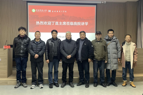 12月12日,公司特邀河南省美术家协会副主席、著名画家丁昆先生于实训楼二楼艺言堂作学术报告。公司全体研究生、部分专业教师及“国培计划”学员参加,经理邹东升主持。