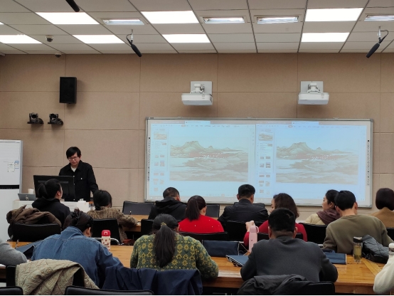3月11日,应公司邀请,曹辉老师在艺术楼217教室为省培学员作题为《田园山水画》的专题讲座,让学员们深入了解田园山水画的绘画艺术,并且近距离观看田园山水画的绘画技法。
