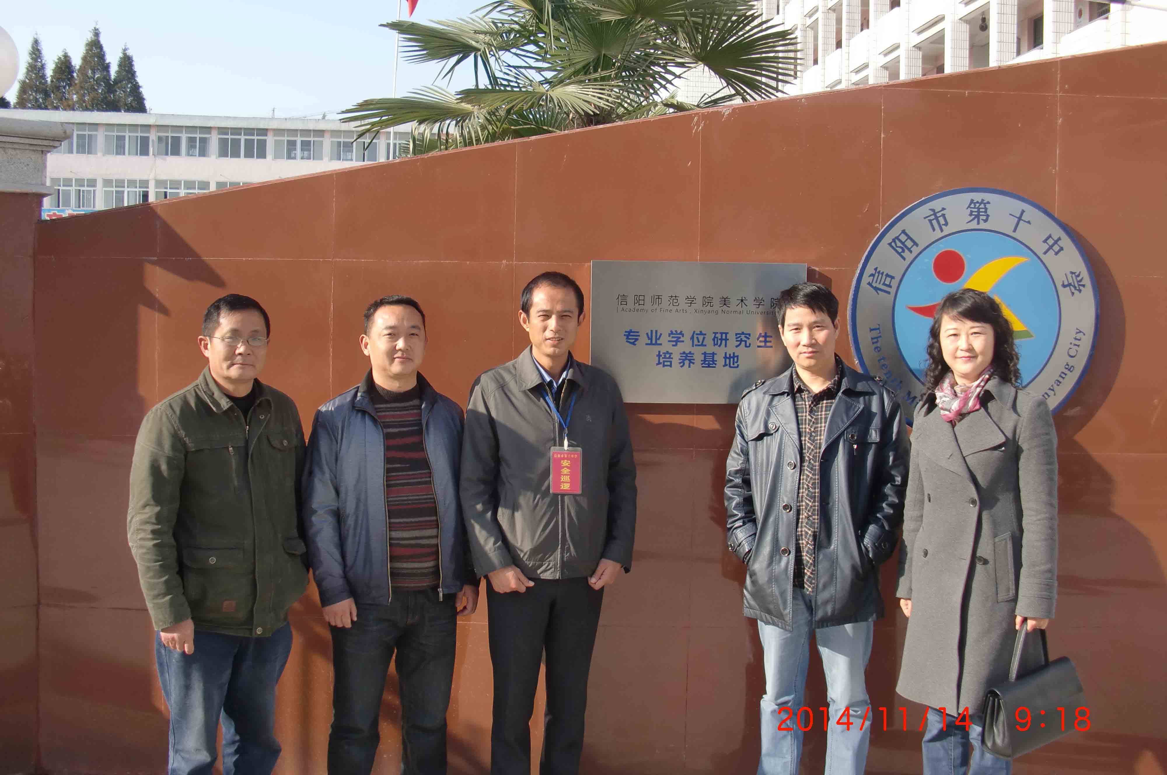 2014年11月14日上午,信阳师范公司美术公司教育硕士研究生实践基地挂牌仪式在信阳市第十中学隆重举行。信阳师范公司美术公司副经理邹东升,美术公司研究生教学秘书涂湘东,信阳市第十中学董事长朱继来,第十中学美术教师王信达等相关领导同志出席了挂牌仪式。