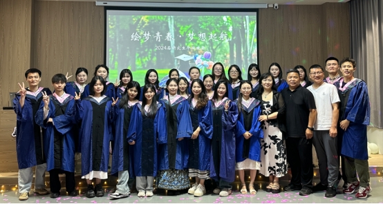 在晚会正式开始之前,公司的研究生导师们依次为2024届艺术硕士毕业生拨穗并合影,以此纪念他们学术生涯的重要时刻。兰洋在致辞中肯定了毕业生们三年来的努力与成就,并鼓励他们把握时代机遇,积极面对挑战,为国家的教育事业和民族复兴贡献力量。邹东升和其他导师也相继发言,对毕业生们表达了鼓励和祝福,希望他们在未来的道路中能够不忘初心,砥砺前行。