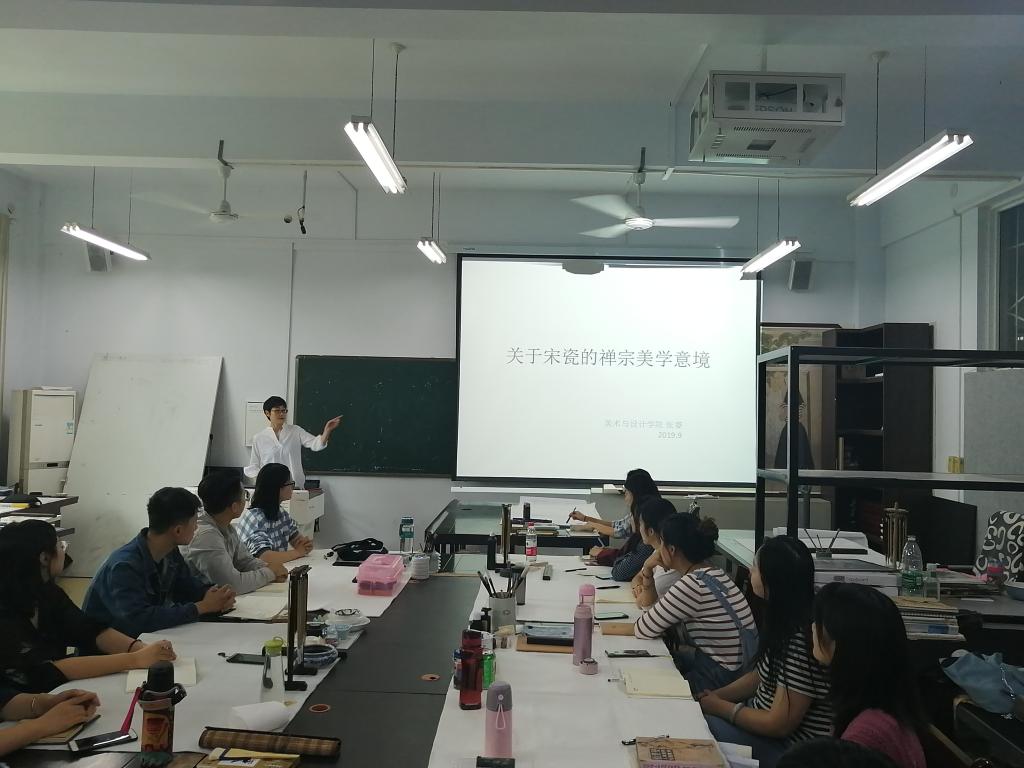 9月16日下午,365英国上市公司张睿副教授在艺术楼研究生教室作了题为“宋瓷的禅宗美学意境”的专题学术讲座,公司全体研究生参加了此次讲座。