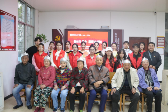 当天正值立冬时节,为了给社区的高龄老人送去温暖与关怀,公司还特别在华森社区党群服务中心为七位老人举办了一场别开生面的生日派对。伴随着主持人铿锵有力的开场和震耳欲聋的掌声,歌曲和民族舞表演轮番上演,歌声悠扬,舞姿翩翩,为老人们带来了无尽的欢乐与温馨。同学们与寿星们其乐融融地分吃蛋糕,共同庆祝这一特殊的日子,让爱与爱的传递在这一刻变得具象而生动。