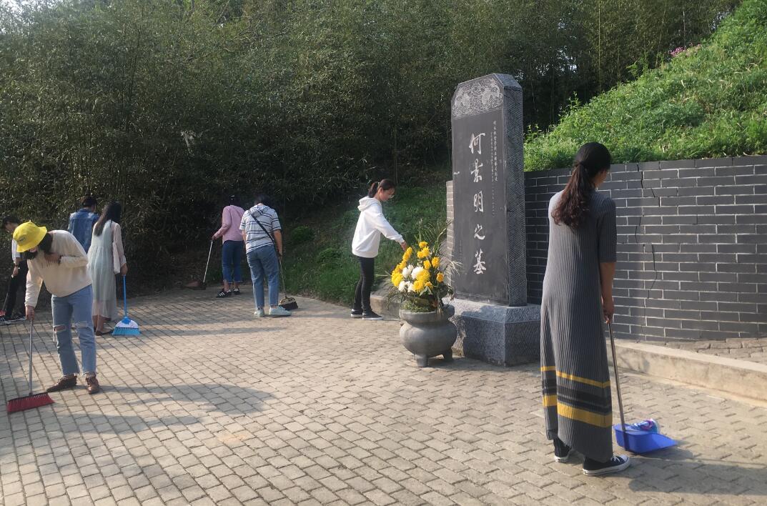 怀着对先贤无限崇敬的心情,大家静静地肃立在景明墓前,仔细聆听负责人同志对何景明生平事迹的介绍,深刻感悟何景明“性耿直、淡名利、敢于直谏、奉献祖国”的崇高品格。在负责人的带领下,大家排着整齐的队伍,绕墓一周,并深深鞠躬,表达对先贤的敬意与怀念。随后,按照之前分配好的区域,大家对何景明墓周围的空地及墓前的神道进行了细致的清扫。清扫过程中,虽然头顶烈日,大家却还是一丝不苟地进行着清扫工作,没有丝毫的退却。经过一下午的清扫,何景明墓园变得干净整洁。