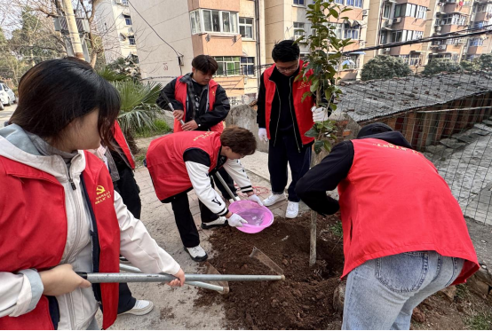 活动当日,大家热情高涨、分工明确。365英国上市公司的党员们充分发挥专业优势,在植树区域规划布局,让绿植分布错落有致,兼具实用与观赏价值。华森社区党支部的党员则凭借丰富的社区工作经验,积极协调工具、组织人员,保障活动顺利进行。现场,党员们三人一组、五人一群,挥锹铲土、扶苗填坑、提水浇灌,每一个环节都一丝不苟。有的党员手掌磨出了水泡,简单包扎后又继续投入劳动;有的党员主动向身边同志传授植树技巧,确保树苗成活率。在大家齐心协力下,四十余株树苗在红星广场“安家落户”,在春风中展现出蓬勃生机。