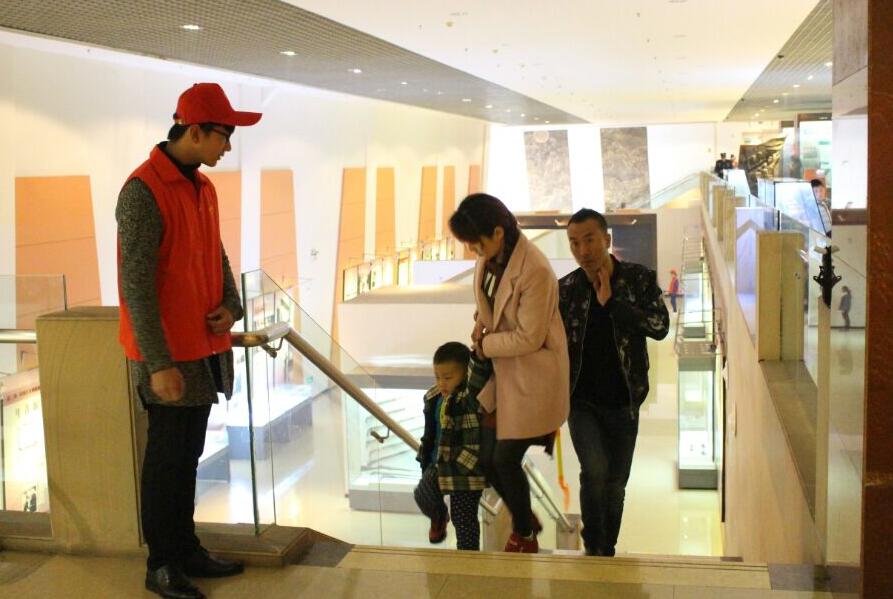 鄂豫皖革命纪念馆的管理人员对公司志愿者的到来表示了热烈欢迎,随后为志愿者们简单介绍了纪念馆的日常工作并进行工作分配。志愿者们在各自的工作岗位上热情洋溢、尽职尽责地为游客们进行服务。纪念馆出入口的志愿者们及时准确的为游客们指引方向;另一些志愿者在楼梯口贴心的提醒游客注意脚下不要滑倒;大型雕塑、沙盘展区的志愿者则详细耐心地为游客们讲解参观的注意事项,如“不要触碰展品”、“不要高声喧哗”、“拍摄不要使用闪光灯”等;志愿者们也积极为游客们讲述展品的文化内涵及历史背景。公司志愿者热情、开朗、真诚的服务态度收获了参观游客的一致好评。