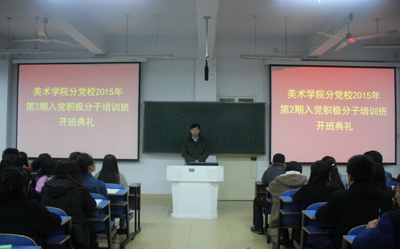 11月16日晚,美术公司分党校2015年第2期入党积极分子培训班开班典礼在艺术楼307举行,美术公司党委书记周子良、副书记李孝民,公司党委组织部组织科科长杨轶中,美术公司团总支书记周贤亮等领导老师出席开班典礼。典礼由李孝民主持。