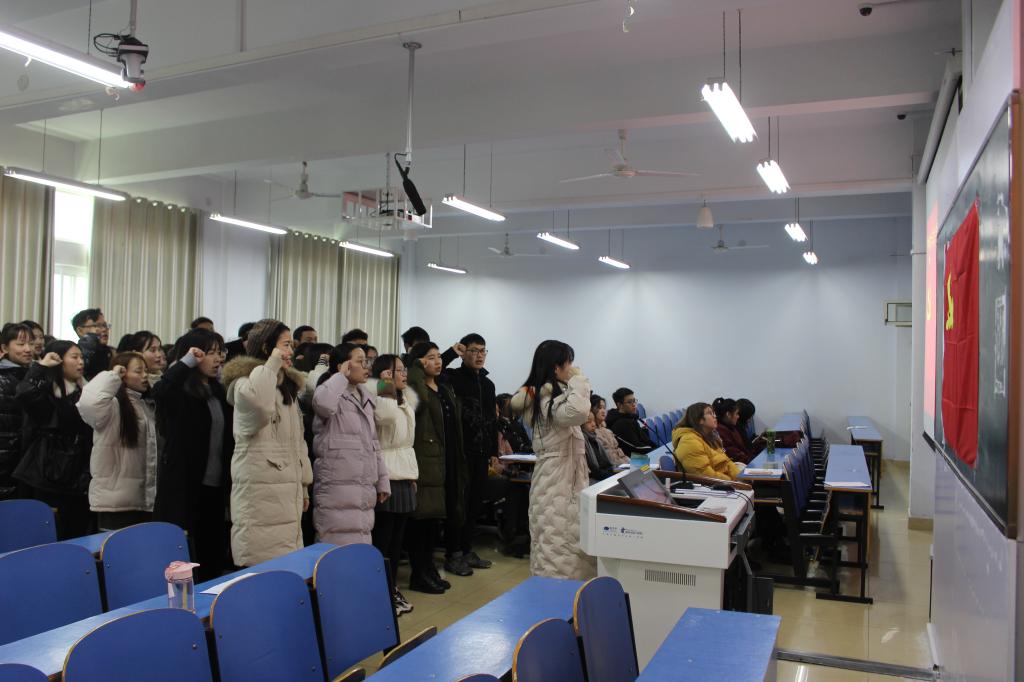 12月19日公司于艺术楼307教室召开2019年下半年新党员入党宣誓大会。公司党委副书记杨轶中、团委老师郑波,辅导员胡霁芳、张暄,以及41名新党员、老党员、入党积极分子参加了此次宣誓大会。会议由胡霁芳主持。