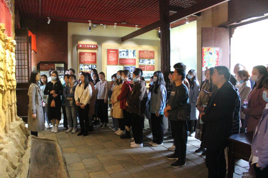 在何家冲政治文化广场前,全体党员在专职组织员饶海虹的带领下,重温入党誓词,面对党旗庄严宣誓,牢记入党初心,坚守理想信念。在讲解员的引导下,大家集体参观了红二十五军军部旧址—何氏祠,通过一件件珍贵的革命文物,一幅幅生动的革命画面,详细了解了红二十五军的发展历程和革命先辈的英雄事迹。随后大家一同重走“长征路”,切身感受红军长征时的艰辛与不易,感悟红二十五军坚韧不拔的长征精神和坚定不移的革命意志。在银杏树下,员工代表王晏殊为大家讲述了党史故事《永不熄灭的红色之火》。