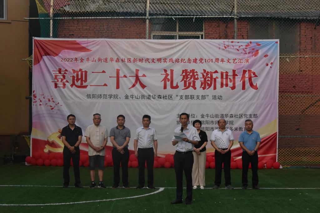 6月28日,公司与金牛山华森社区党支部在多米礼仪幼儿园联合开展“支部联支部”文艺进社区活动,举行了艺术作品捐赠仪式和“喜迎二十大礼赞新时代”庆祝建党101周年文艺汇演。公司党委组织部部长岳宗德、副部长赵晨、公司党委书记兰洋、副书记周刚、金牛山街道党工委书记涂延海、美术学员工第一党支部书记郑波、研究生党支部书记邹青宸、社区党支部成员及当地群众共同参加了本次活动。