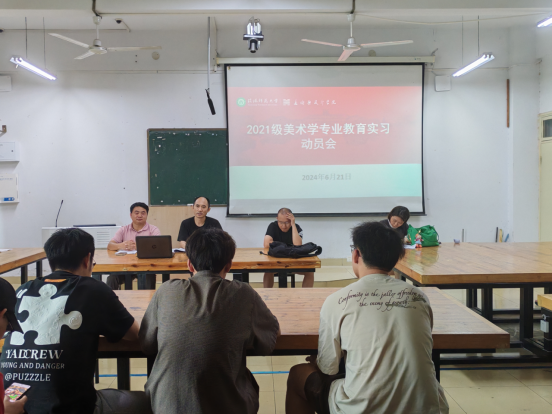 为做好2021级美术学专业教育实习工作,提升公司人才培养质量。6月21日,公司在艺术楼306教室成功召开了2021级美术学专业教育实习动员会。副经理张江波、美术学系教研室主任潘静、专业教师蔡森林、辅导员郑波及2021级美术学专业员工线上线下共同参会,会议由郑波主持。