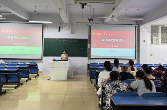 各班班主任结合高等教育特点,通过多媒体课件详细解读了考试纪律和学术规范,重点剖析了论文抄袭、数据造假等学术不端行为的严重后果。老师们强调,诚信不仅是立身之本,更是维护学术公平的重要保障,号召同学们将诚信意识转化为实际行动。在互动环节,同学们围绕“诚信与生活”“诚信与学习”展开热烈讨论。大家从日常生活中的守信履约,谈到学习中的诚信应考,通过真实案例分析了作弊抄袭的危害。临近期末,老师们特别提醒要以真才实学迎接考试。最后,全体同学郑重签署了诚信承诺书,展现了践行诚信的决心。