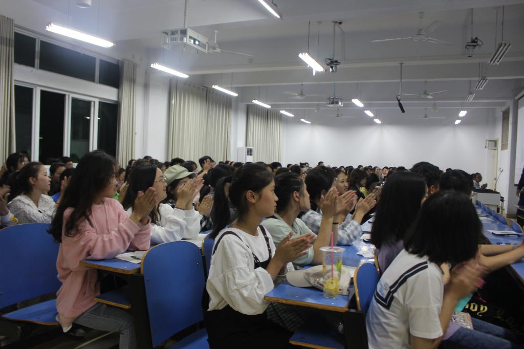 首先,吴迪以感恩校园行为主题,结合ppt加深了同学们对感恩和励志的认识。并以自身的事例用简单的语言和动情的真实故事演讲,阐述了感恩的真实内涵。他希望大家能够感恩经历的一切好的、坏的事物,努力地在感恩中励志成长,不断成为更加优秀的人。接着,陈俭明讲述了他在初入大学时的困惑,用真诚与坦率让大家了解到在大学里确定目标的重要性。并分享了他在员工会任职期间的工作与学习,亲切朴实的话语,每一句都在鼓励着大一新生以一种更加积极的态度去适应大学的生活,学会担当,更要懂得感恩。最后,他们鼓励同学们要坚定理想信念,有目标的学习,懂得感恩,回报社会,为将来走上社会打好基础。两位学长语言风趣幽默,现场氛围十分融洽。
