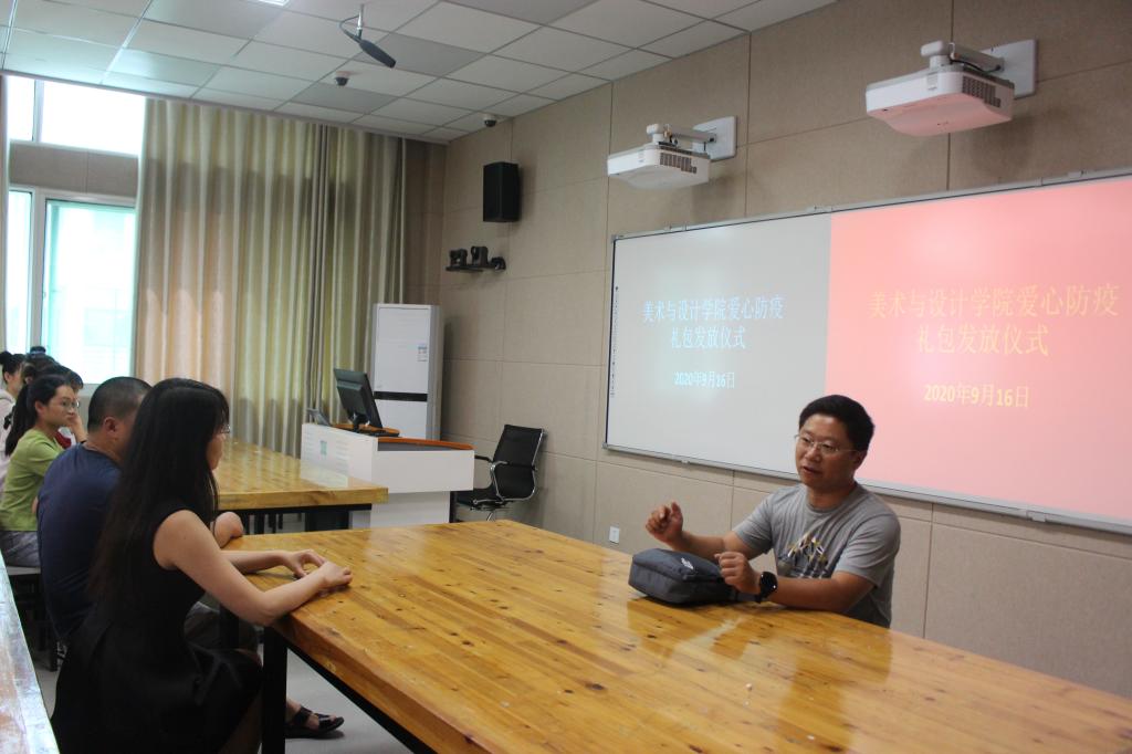 9月16日,公司于艺术楼217教室举办爱心防疫包发放仪式。党委副书记杨轶中,团委老师郑波,班主任邹青宸、张暄以及员工代表共同参加。发放仪式由杨轶中主持。