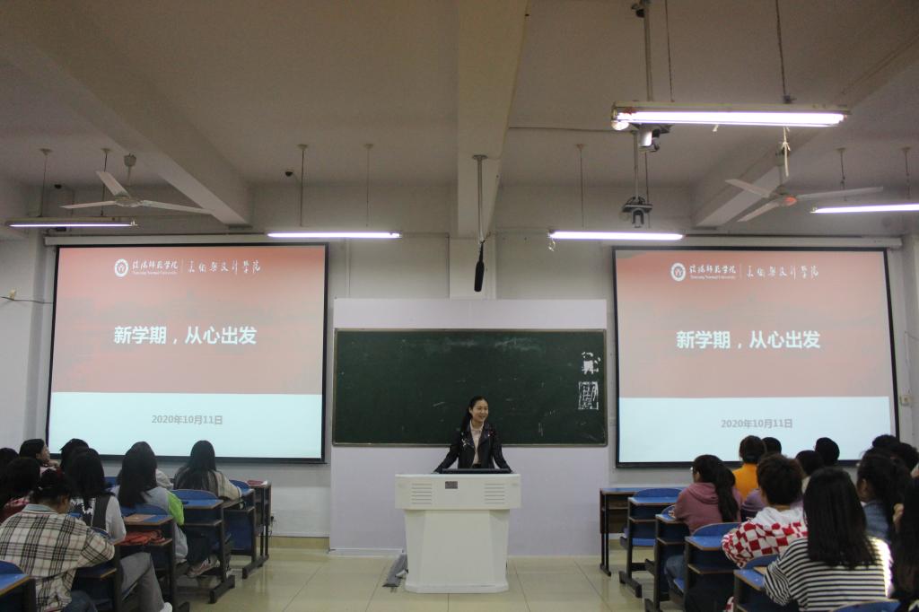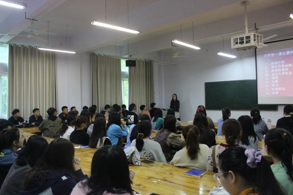 10月11日,公司在艺术楼307、216教室召开新生第一次主题班会。班会由新生班主任饶海虹、胡霁芳老师主持,各班班助以及2020级全体新生共同参加了此次班会。