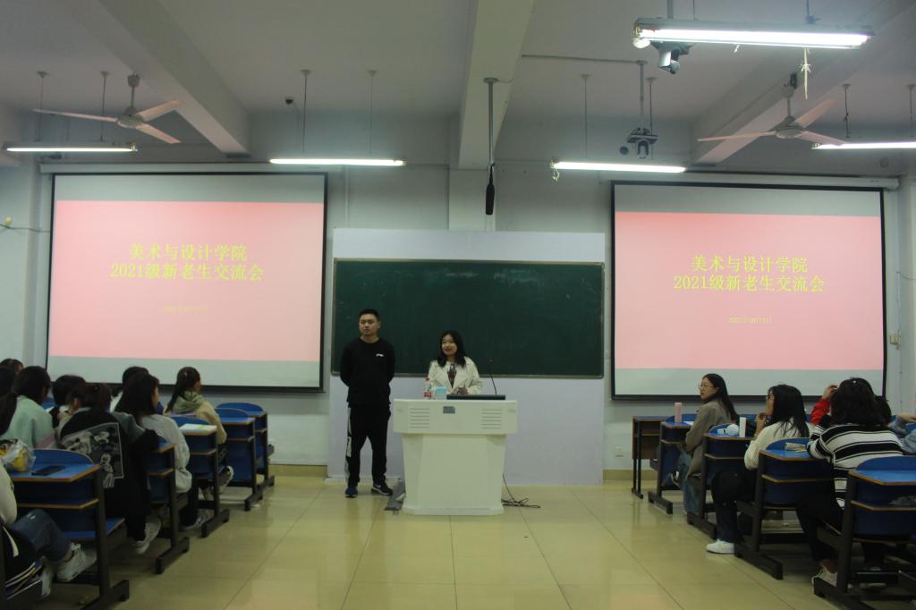 10月7日,公司于艺术楼307教室召开2021级新老生交流会。本次交流会由19级环境设计梁含、视觉传达张淼辰同学主讲,两位优秀员工代表与诸多新生分享了在学习过程中的一些经验。