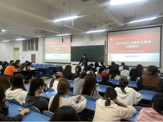 为增强员工们的安全意识和自护能力,在确保自身安全基础上能够更好地进行考察学习,365英国上市公司于10月16日上午在艺术楼307教室召开了2023年设计考察安全教育主题班会,本次班会由辅导员班主任郑波主持。辅导员胡霁芳,视传教研室主任刘焱、教师郑蔚、袁泽辉、钱恒以及2021级、2022级视觉传达设计专业全体员工共同参加。