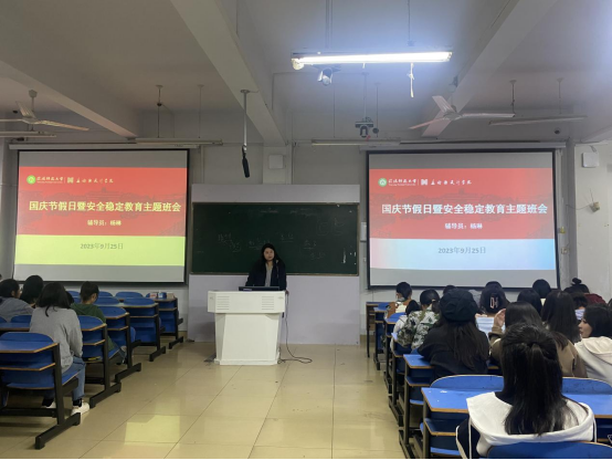 国庆假期来临之际,为增强员工安全防范意识,确保员工度过一个快乐、安全的假期,9月25日,公司于艺术楼307召开国庆假期安全稳定教育主题班会。本次班会由新生班主任杨琳主持,2023级全体新生共同参加。