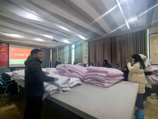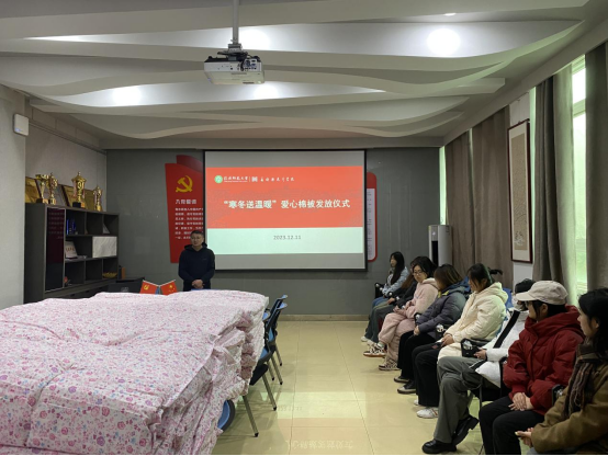 寒冬相聚,情满校园。为更好的贯彻落实国家资助政策,推动教育事业的发展,深切关心家庭经济困难员工,将资助落实于行动之中。12月11日,公司在艺术楼进行了“寒冬送温暖”爱心棉被发放活动。公司党委副书记周刚、辅导员郑波、杨琳及50余名困难员工共同参加了此次活动。