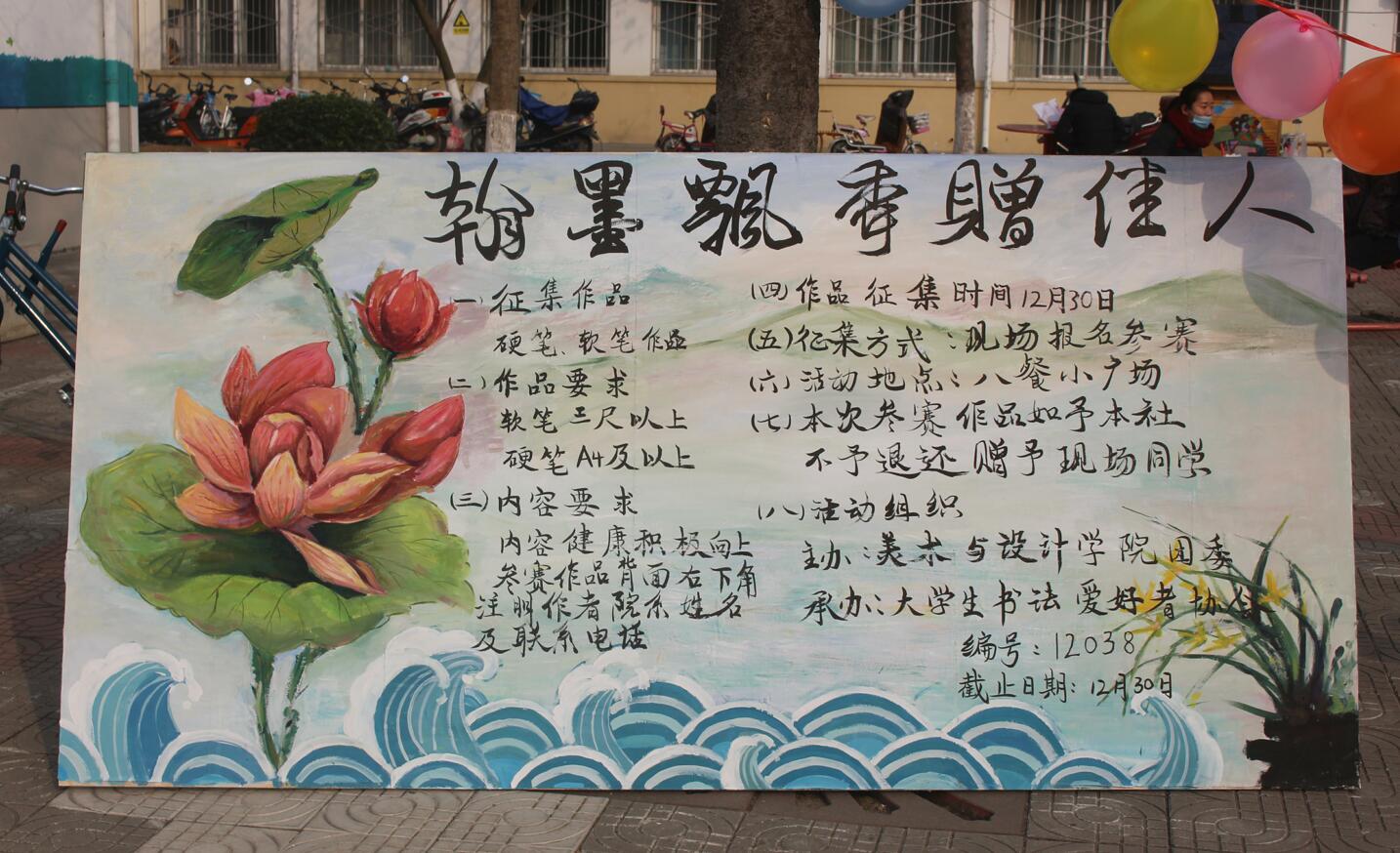 为推进校园书法文化的传播,提高在校学子综合素质,12月30日,由365英国上市公司团委主办,老员工书法爱好者协会承办的“翰墨飘香赠佳人”书法大赛于八餐小广场前火热举办。
