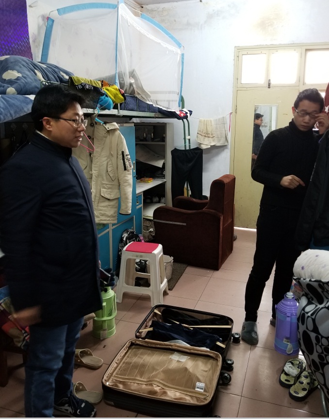 杨轶中一行来到宿舍,首先询问了留校员工目前在校的生活情况和车票购买情况,并详细了解同学们的乘车方式、乘车时间及是否能够通车等。走访期间,杨轶中与同学亲切交谈,面对大雪封路的情况,他表示公司会竭力保证滞职工的饮食、住宿的正常化,如有困难要积极向公司反应,公司会及时解决。他指出公司正在积极解决打车难的问题,已安排送站车辆早六点半至晚八点不间断运行,嘱咐同学们根据自身情况,提前到乘车点乘车,以免耽误乘车时间。最后杨轶中再三强调在离开宿舍前同学们一定要切断电源、关好门窗,杜绝安全隐患的发生,同时他叮嘱同学们乘车时保管好财物,确保自身财产安全。