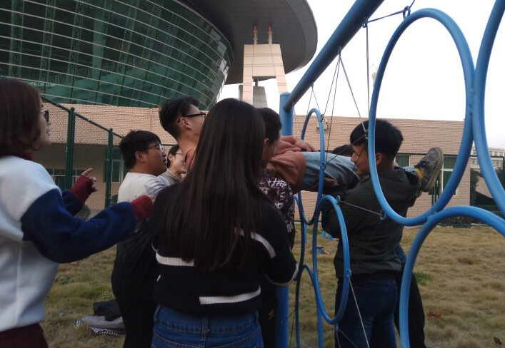 活动伊始,专业拓展师为各位同学讲解了进行素质拓展活动的注意事项,并着重强调了个培训项目的完成技巧。随后,在拓展师的带领下,同学们依次体验了高空断桥、模拟电网、信任背摔等项目。高空断桥项目中,一些同学由于突然升空而感到慌乱,无法通过断桥,此时地面上的同学们则不断鼓励、安慰断桥上的同学,使其顺利通过断桥。为促进新生彼此之间的信任关系,拓展师特意增加了信任背摔这一环节。此环节中,站上高台的同学完全信任台下负责支撑的同学,而台下的同学则竭力做好本质工作,确保高台上的同学倒下来后的安全。此次素质活动过程中,同学们积极配合,克服困难,挑战自我,出色的完成了各项训练,展现了良好的协作能力和自我超越精神。