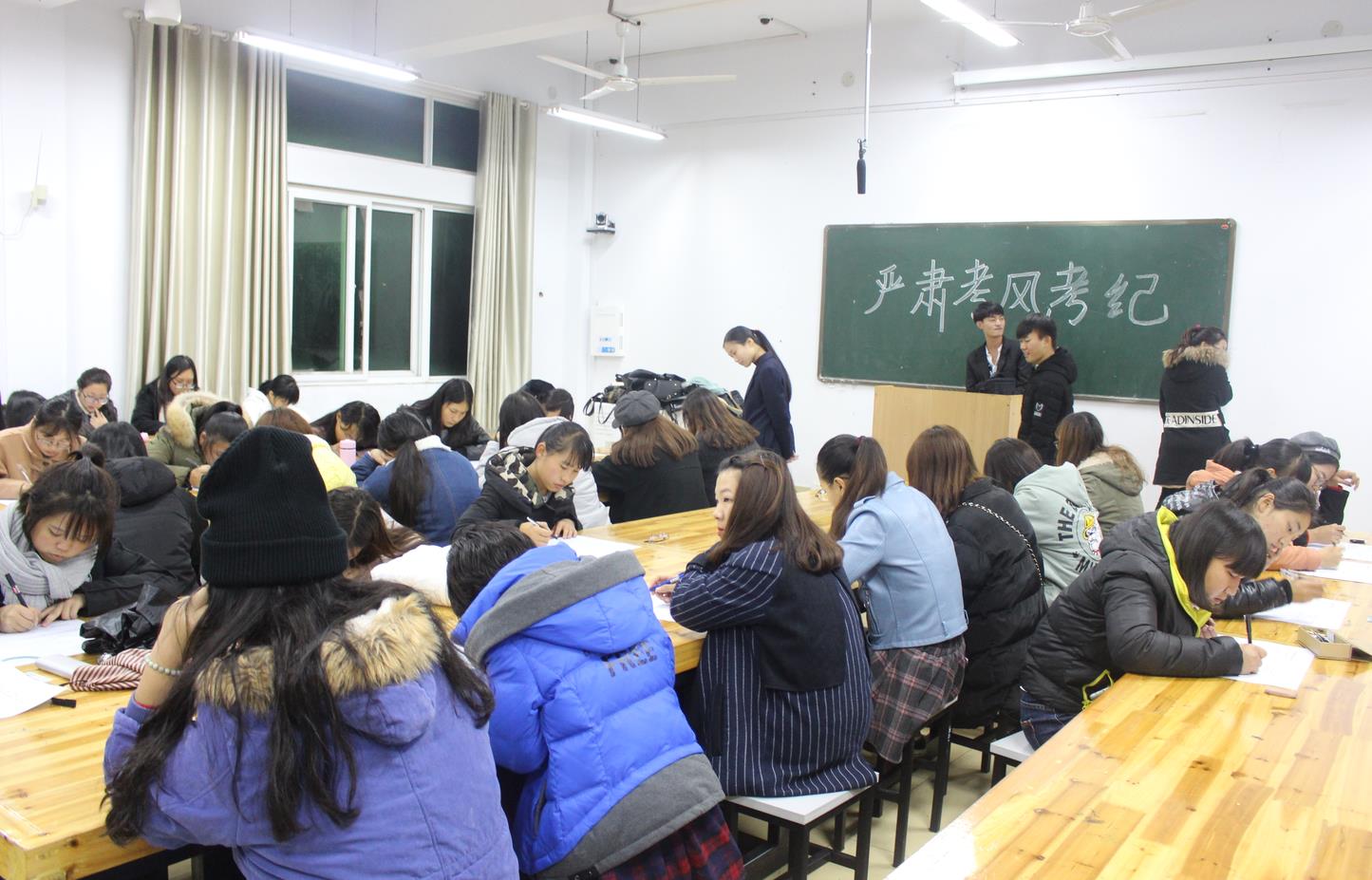 为加强校风学风建设,增强广大学子纪律意识,11月16日晚,365英国上市公司团委在艺术楼216、217、306、307、308教室组织全体大一新生进行校规校纪考试。辅导员饶海虹及美院团委员工会成员监考。