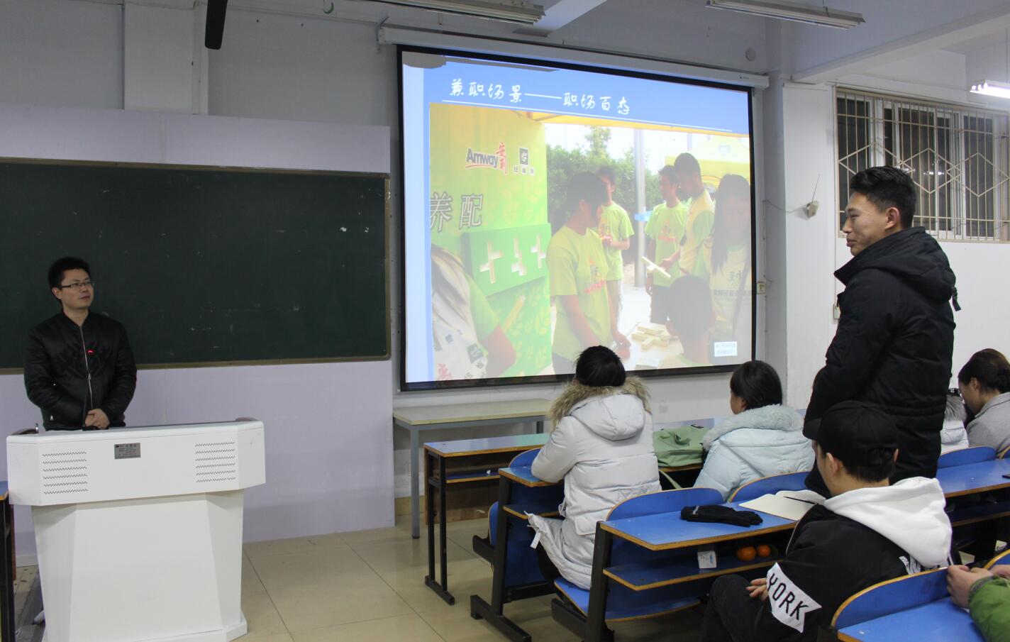 班会伊始,张锐首先向同学们展示职场场景的一系列照片,通过照片让同学们更好地感受职场氛围。随后,同学们积极踊跃地分享自己的兼职经历与经验,提醒其他同学兼职时应该注意的问题。张锐说,兼职既有“正能量”,也有负面影响,他要求员工注重兼职的安全问题,强调了兼职的常见骗术及其应对方法,增强员工的防范意识。最后,张锐列举多个兼职途径,帮助同学们选择正确的兼职。班会上,员工们认真聆听,踊跃讨论,气氛十分融洽。