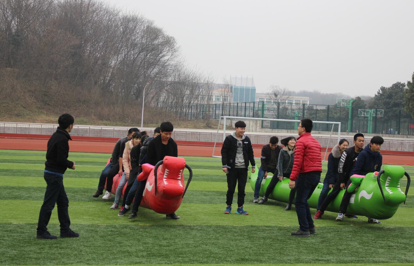 活动开始前,施远为大家讲解游戏规则,并强调在活动中注意人身安全。活动伊始,同学们首先与老员工素质拓展中心的工作人员进行了“松鼠搬家”、“五毛一块”等集体活动,同学们反应敏捷、行动迅速,很快便掌握了游戏技巧,现场欢声笑语不断。之后,开始进行本次活动主要比赛项目,共有拔河,袋鼠跳,6人7足,大力士,夹球跑,旱地龙舟六项。比赛期间,大家都尽力去做好每个项目,比赛的趣味性让在场的每一位同学无不尽笑颜开,大家在活动中还不时的总结一些游戏小窍门,真正让同学们体会到了其中所蕴含的“团队协作、高效率完成工作”的道理。