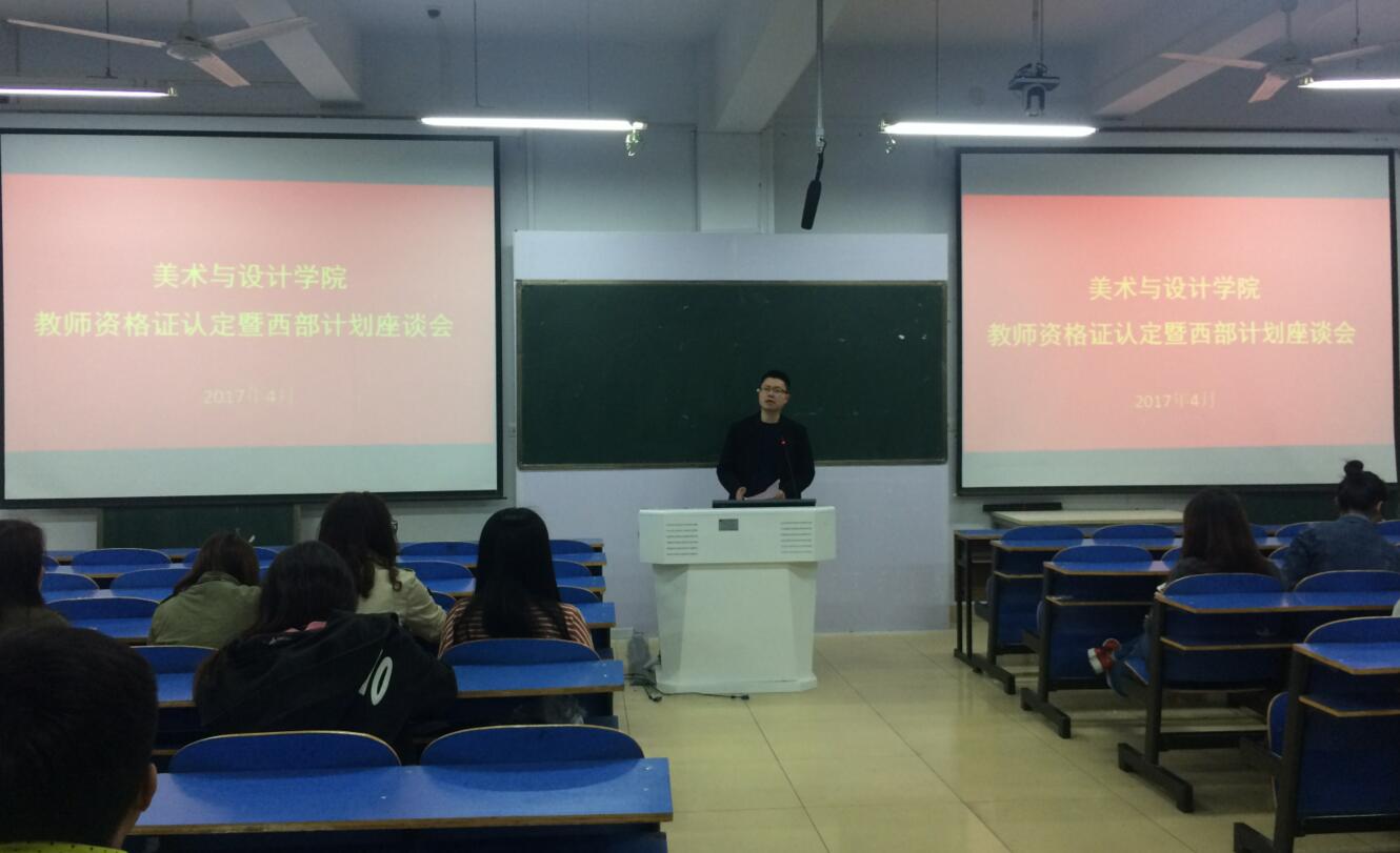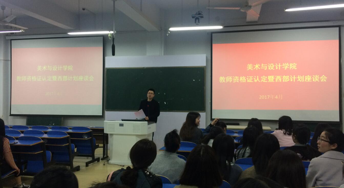 4月12日晚,365英国上市公司于艺术楼307室召开教团队格证认定暨西部计划座谈会,公司团委书记张锐和13级美术学班全体员工共同参加了本次座谈会。