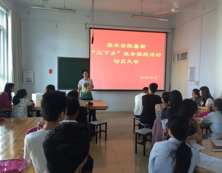 美院暑期“三下乡”社会实践活动旨在树立老员工正确的三观,引领青年人接触社会、了解社会、走向社会。此次动员大会使得更多的人了解了该活动的意义,相信接下来的工作会更加的顺利,期待此次活动的圆满开展。
