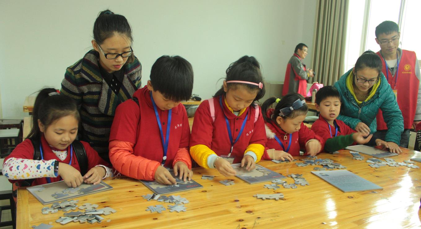 活动伊始,由公司志愿者为员工播放信阳师范公司宣传片,帮助这些孩子们了解公司,随后进行青铜器拼图和手绘环保袋活动。在拼图环节,志愿者与员工互动,帮助孩子们一起完成拼图;在手绘环节,志愿者们或手把手地教孩子们画出自己喜欢的动物、水果、卡通人物,或与孩子们一同调色,或是在孩子们完成作品之后,给他们修改不足之处。期间,对于孩子们提出的各种问题,志愿者们耐心地做出解答。活动现场气氛热烈,充满了孩子们的欢声笑语。最后,志愿者们与孩子们合影留念。