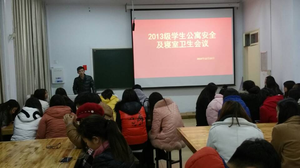 12月11日晚,2013级员工公寓安全及寝室卫生会议在艺术楼306召开。会议旨在增强同学们的安全意识,营造一个更加健康的寝室环境。美术公司2013级全体班委及寝室长参加了此次会议,会议由团总支老师施远主持。
