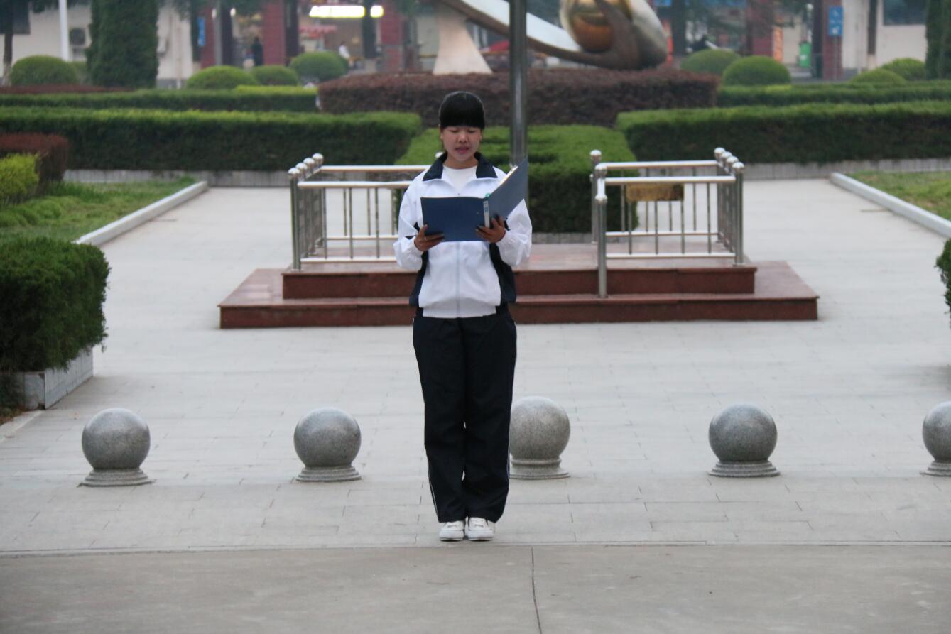 六点三十分,随着悦耳的校园铃声响起,升旗仪式正式开始。在师生的注目礼中,英姿飒爽国旗护卫队成员迈着铿锵有力的步伐走到国旗台下,伴着激昂的《义勇军进行曲》,升旗手振臂一挥鲜艳的五星红旗冉冉升起。