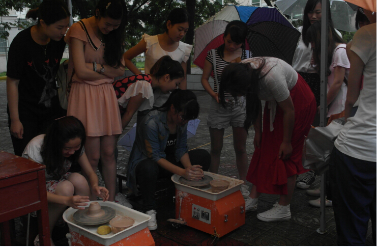 5月24日, 由艺术设计协会主办的“探寻中国文化,陶艺塑造多彩生活”陶瓷制作展览活动在八餐小广场成功举行。现场吸引了众多同学前来参加。