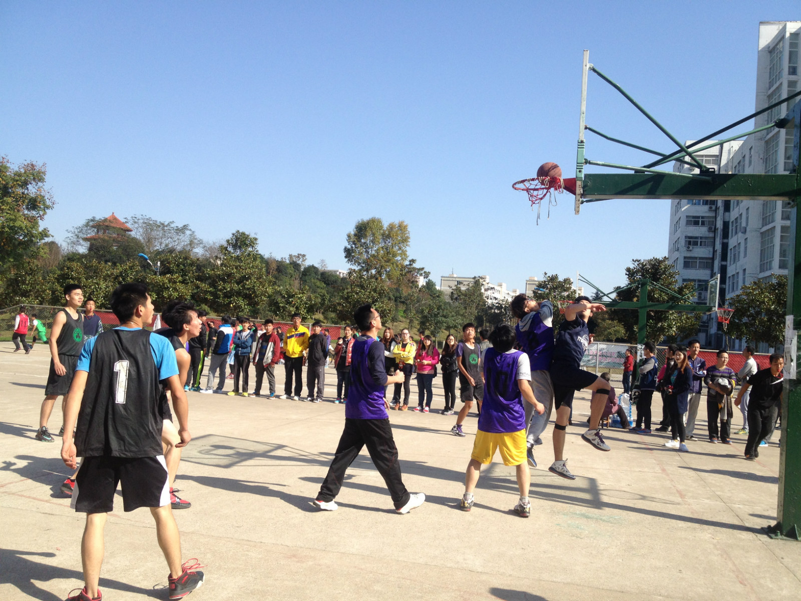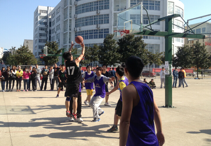 11月13日,“雷速杯”八强晋级赛在西篮球场开赛。美术公司对抗研究生队,现场气氛热烈。