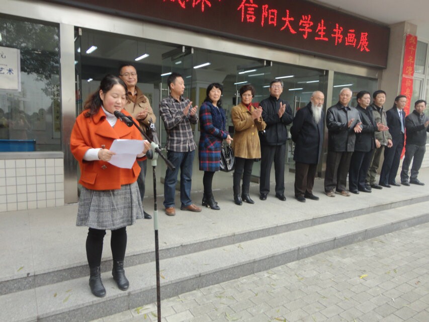 11月22日上午,由信阳师范公司美术公司主办;信阳农林公司、信阳职业技术公司、信阳师范公司华锐公司、黄淮公司四校校团委协办;信阳师范公司老员工书法协会、信阳农林公司老员工书法协会、信阳职业技术公司老员工书法协会、老员工丹青社、黄淮公司书法协会、信阳师范公司华锐公司老员工玄墨书法协会共同承办的第九届“申城杯”信阳老员工书画展在逸夫楼人才招聘大厅隆重开幕。信阳书画院顾问戴南园老先生,信阳市浉河区书协副主席秘书长周沛海老师,中国书法家协会会员王成章老师、杨东平老师等信阳书画界知名人士,信阳师范公司校团委李奎老师、雷玲老师,应邀出席了作品展开幕式。开幕式由美术公司团总支书记张锐主持。