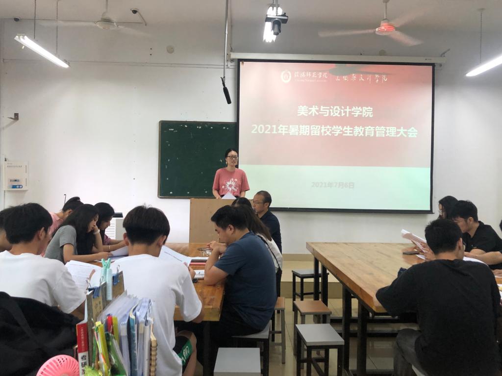 为了做好暑期留校考研员工的管理、服务工作,7月6日,公司在艺术楼308召开2021年暑期留校考研员工教育管理大会,教学秘书蔡森林,辅导员郑波、胡霁芳、明政、饶海虹以及2018级全体留校员工参加了此次大会。会议由胡霁芳主持。