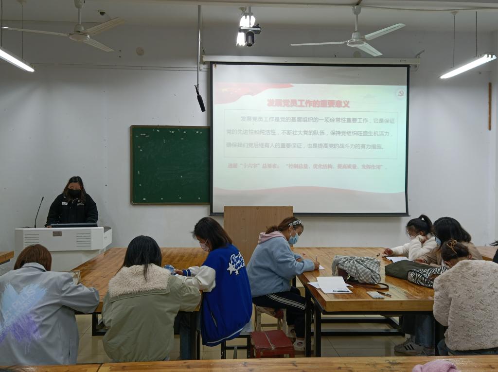 课堂上,陈家艺通过ppt与视频相结合的方式,介绍了中国共产党的光辉发展历程,让同学们从党的发展历程中感受党的伟大,陈家艺向同学们强调要以高度的思想觉悟和行动自觉去深化学习党史,毫不动摇地坚持中国共产党的领导。随后,张靖袆系统介绍了《中国共产党发展党员工作细则》,让同学们对照入党条件,理清发展顺序,进而更加清楚怎样才能入党。最后由张捷同学例举时代伟人,体会到优秀的中国共产党人是筑牢信仰之基、补足精神之钙的开拓者、创新者、奋斗者,更是作为新时代新青年老员工的学习榜样。同学们纷纷表示要坚持学习党史,常学常新,不断感悟,争做新时代的楷模并发挥党员先锋模范作用。