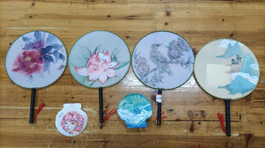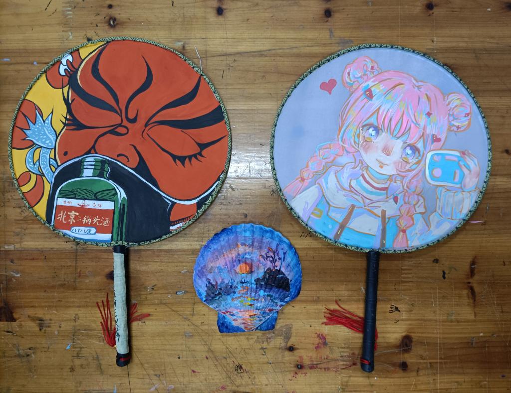 活动分为团扇作画、贝壳创作画两个类型。活动当天,工作人员提前到达以便布置场地,并安排人员对参赛者告知活动流程和解决疑问。参与活动的同学需在活动当天领取材料,自行创作,并及时交回参与评选。同学们细致勾勒,尽展才华,每一幅作品,都包含着同学们的艺术创想,同时也表达出同学们的创作激情和对美好生活的热爱。作品风格各异,多姿多彩,令人大饱眼福。本次参赛作品交由专业的评审团进行筛选最终评选出一等奖3名,二等奖6名,三等奖6名。