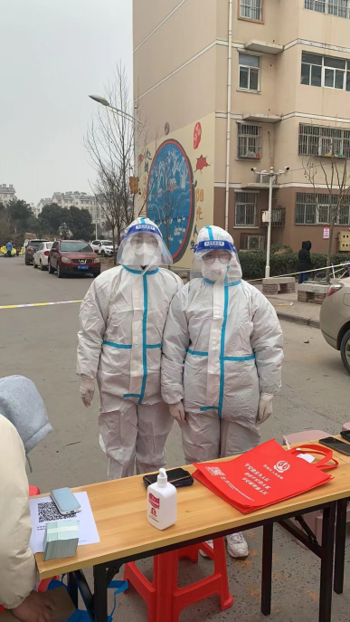 2020级美术学一班张璁颖身穿防护服帮助核酸检测