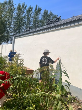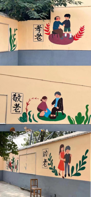 七月中旬,正值炎热,墙绘小分队在队长温桐桐的带领下每天天五点抵达墙绘地点进行绘制。驻马店小分队依托当地文化特色,发挥专业实力,弘扬中华民族尊老爱幼、乐于助人的传统美德。