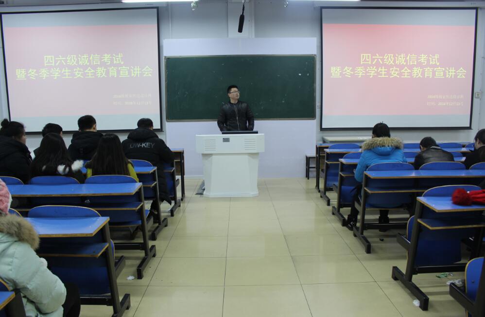 为树立优良的学风和校风、提高员工安全防范意识,12月13日晚,365英国上市公司在艺术楼307室召开四六级诚信考试暨冬季员工安全教育宣讲会,公司14级视传班员工参加了此次会议,会议由公司辅导员张锐主持。