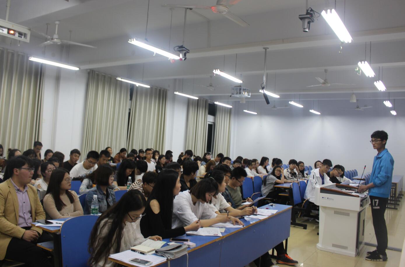 会议伊始,薛宇简要介绍了会议流程,即竞选演讲、主席团提问、民主投票及公布结果四个环节,并预祝会议选举圆满成功。竞选正式开始后,各个部门的干事们以饱满的精神、昂扬的姿态登台演讲,结合PPT对各自经历、竞选职务及个人优势进行充分展示。在提问环节中,各位评审对竞选者进行了细致的提问,并作出中肯的点评。最后,结合观众投票及民主评分评选出适合竞选职位的候选人。