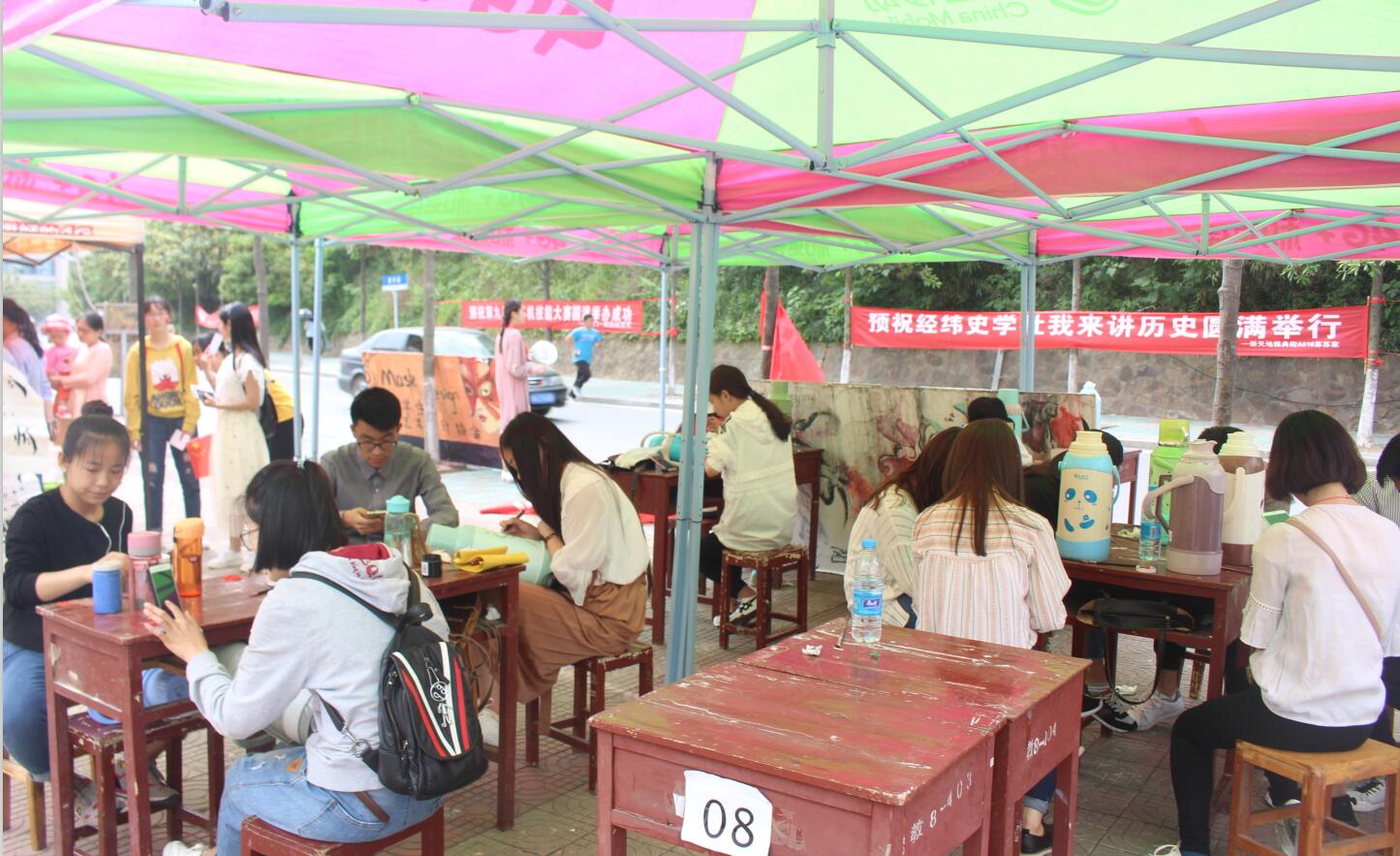 本次活动以“让暖瓶不再认错主人”为主题,分为专业组和非专业组展开比赛。参赛者纷纷将自己的暖瓶带到活动现场,由主办方为选手提供绘画工具。他们有的用马克笔勾勒出花季少女,有的用水彩绘出动漫图案,有的用水粉晕染出繁星点点。构图、打稿、上色,大家聚精会神、有条不紊。经过参赛者们细心的绘画,每个暖瓶都变得色彩鲜艳、造型独特,形成校园里一道亮丽的风景线,同时也吸引了许多师生驻足观看。活动结束后,由专业人员评选出涂鸦优胜者,并颁发证书。