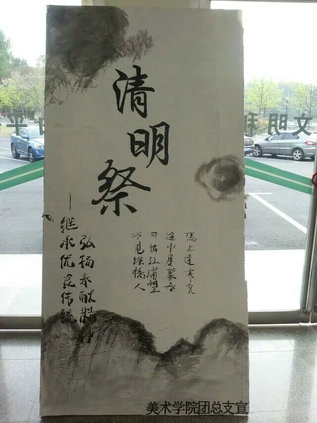 为了让广大学子在传统节日中了解革命先辈的感人事迹,感受革命精神,发扬中华民族奉献他人,奉献社会的优良传统。4月4日,美术公司团总支员工会组织员工以“清明祭——继承优良传统,弘扬奉献精神”为主题举办绘画活动,并在艺术楼前展出同学们的主题作品。