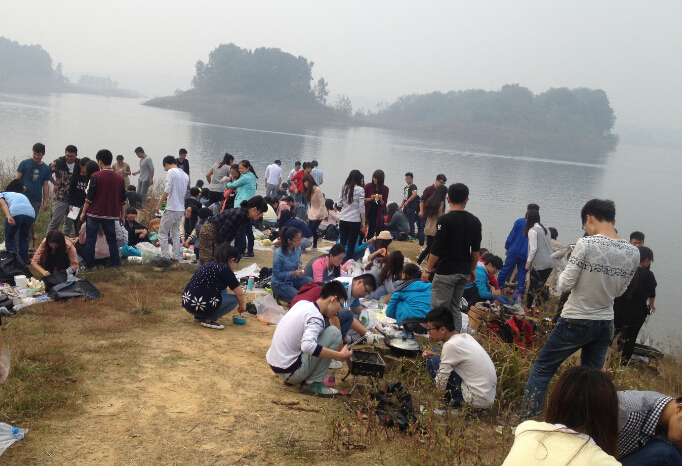经过一个多小时的路程,顺利抵达目的地——燕尾岛。随后,大家开始紧张而有趣的野炊活动。活动过程中,大家分工明确、井然有序,积极参与洗菜、切菜、搭灶台、找木材等工作。不一会整个燕尾岛弥漫着烧烤香味,现场瞬间成为了美食天地,各部门相互分享亲手烧制的不同美食,欢笑声也荡漾开来。饭后,大家清理餐后垃圾,并组织了即兴表演,男生帅气的走秀,女生优美的舞姿,使得现场笑声不断,本次野炊在同学们合唱《朋友》后圆满结束。最后,员工会全体成员合影留念。